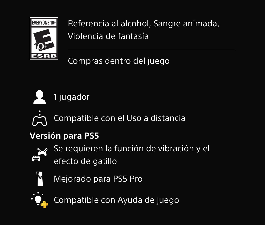 - Siente las acciones del juego con la respuesta háptica del control inalámbrico DualSense™.